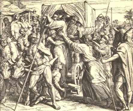 5 | And Jacob rose up from Beersheba: and the sons of Israel carried Jacob their father, and their little ones, and their wives, in the wagons which Pharaoh had sent to carry him.