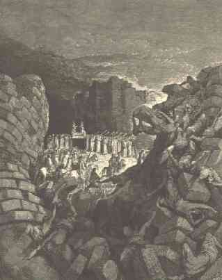 20 | So the people shouted when the priests blew with the trumpets: and it came to pass, when the people heard the sound of the trumpet, and the people shouted with a great shout, that the wall fell down flat, so that the people went up into the city, every man straight before him, and they took the city.