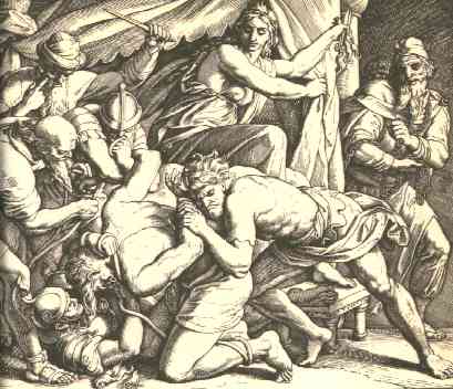 30 | And Samson said, Let me die with the Philistines. And he bowed himself with all his might; and the house fell upon the lords, and upon all the people that were therein. So the dead which he slew at his death were more than they which he slew in his life.