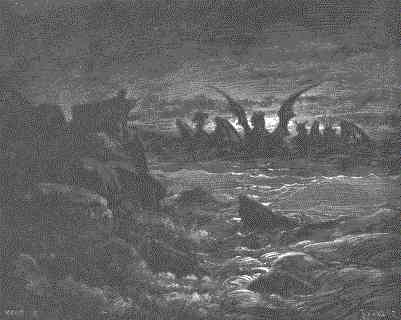 7 | After this I saw in the night visions, and behold a fourth beast, dreadful and terrible, and strong exceedingly; and it had great iron teeth: it devoured and brake in pieces, and stamped the residue with the feet of it: and it was diverse from all the beasts that were before it; and it had ten horns. |