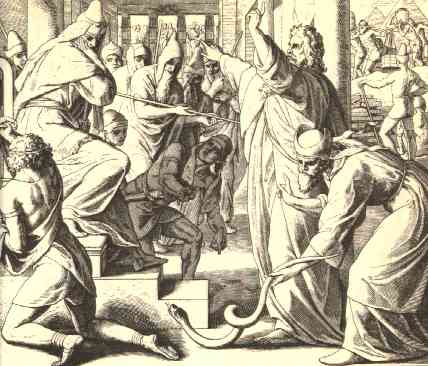 10 | And Moses and Aaron went in unto Pharaoh, and they did so as the LORD had commanded: and Aaron cast down his rod before Pharaoh, and before his servants, and it became a serpent.