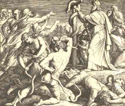 8 | And the LORD said unto Moses, Make thee a fiery serpent, and set it upon a pole: and it shall come to pass, that every one that is bitten, when he looketh upon it, shall live.