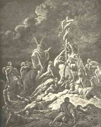 6 | And the LORD sent fiery serpents among the people, and they bit the people; and much people of Israel died. |