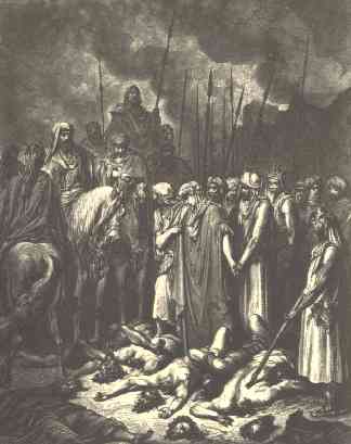 21 | And they utterly destroyed all that was in the city, both man and woman, young and old, and ox, and sheep, and ass, with the edge of the sword.