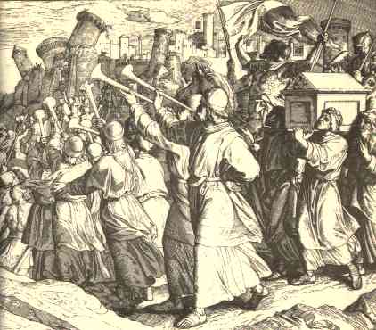 8 | And it came to pass, when Joshua had spoken unto the people, that the seven priests bearing the seven trumpets of rams' horns passed on before the LORD, and blew with the trumpets: and the ark of the covenant of the LORD followed them. |