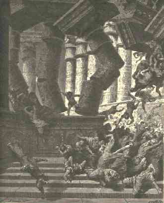 30 | And Samson said, Let me die with the Philistines. And he bowed himself with all his might; and the house fell upon the lords, and upon all the people that were therein. So the dead which he slew at his death were more than they which he slew in his life.