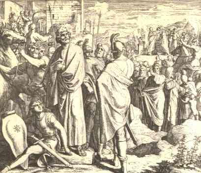 18 | Then king Rehoboam sent Adoram, who was over the tribute; and all Israel stoned him with stones, that he died. Therefore king Rehoboam made speed to get him up to his chariot, to flee to Jerusalem. |