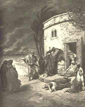 19 | And, behold, there came a great wind from the wilderness, and smote the four corners of the house, and it fell upon the young men, and they are dead; and I only am escaped alone to tell thee.