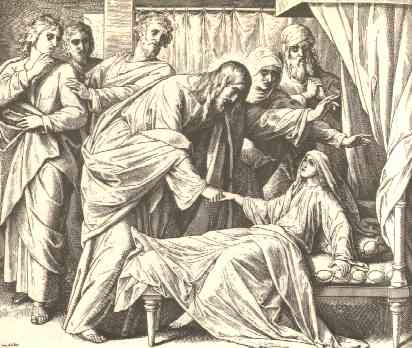 40 | And they laughed him to scorn. But when he had put them all out, he taketh the father and the mother of the damsel, and them that were with him, and entereth in where the damsel was lying. |