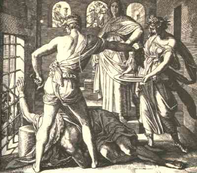 27 | And immediately the king sent an executioner, and commanded his head to be brought: and he went and beheaded him in the prison, |