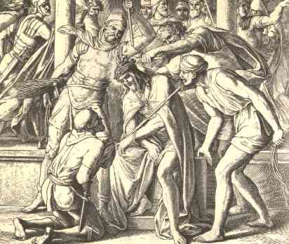 they 1smote him on the head with a reed, and did spit upon him, and bowing their