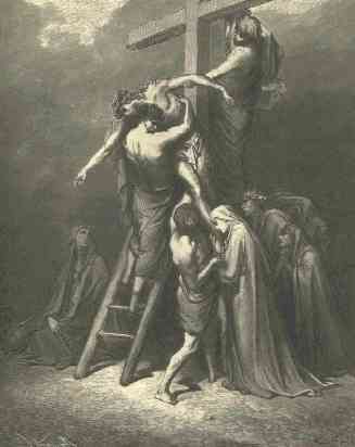 46 | And he bought fine linen, and took him down, and wrapped him in the linen, and laid him in a sepulchre which was hewn out of a rock, and rolled a stone unto the door of the sepulchre. |