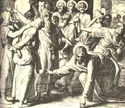 6 | This they said, tempting him, that they might have to accuse him. But Jesus stooped down, and with his finger wrote on the ground, as though he heard them not.