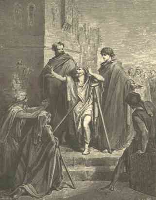 2 | And a certain man lame from his mother's womb was carried, whom they laid daily at the gate of the temple which is called Beautiful, to ask alms of them that entered into the temple; |